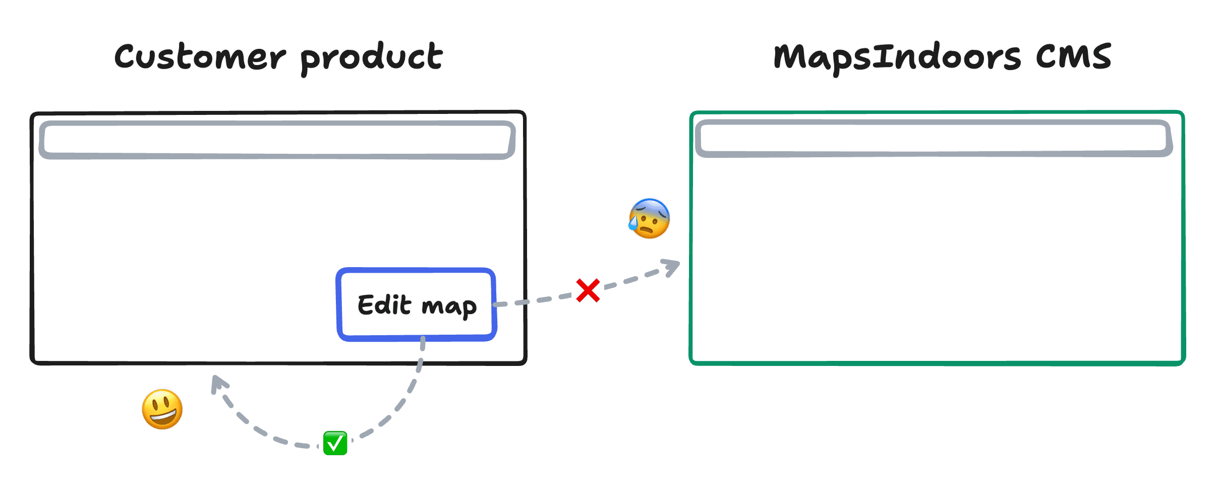 The existing solution—sending users to the MapsIndoors CMS—worked fine for smaller customers, but enterprise clients needed white-label capabilities. They had invested heavily in their own product experiences and refused to disrupt that with external tools.