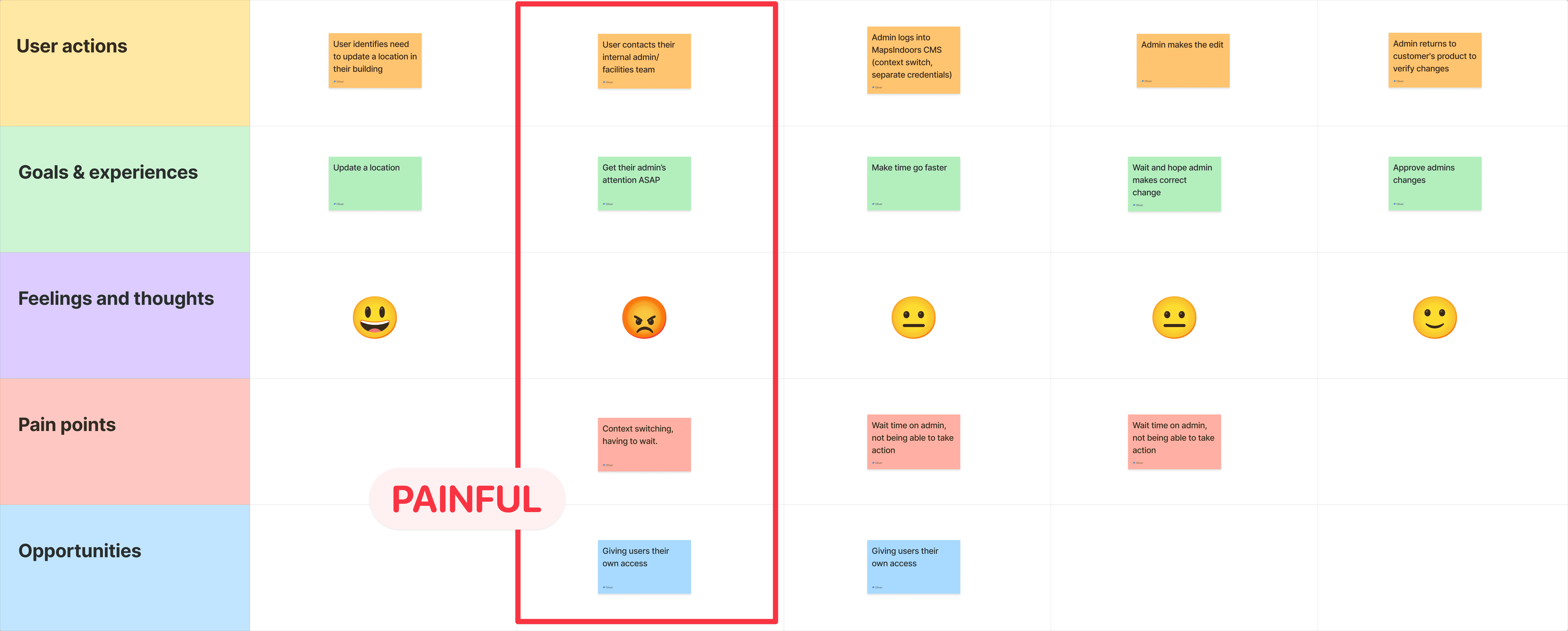 We started with the current state of the handoff journey, visualizing what happened when enterprise customers needed to edit maps: