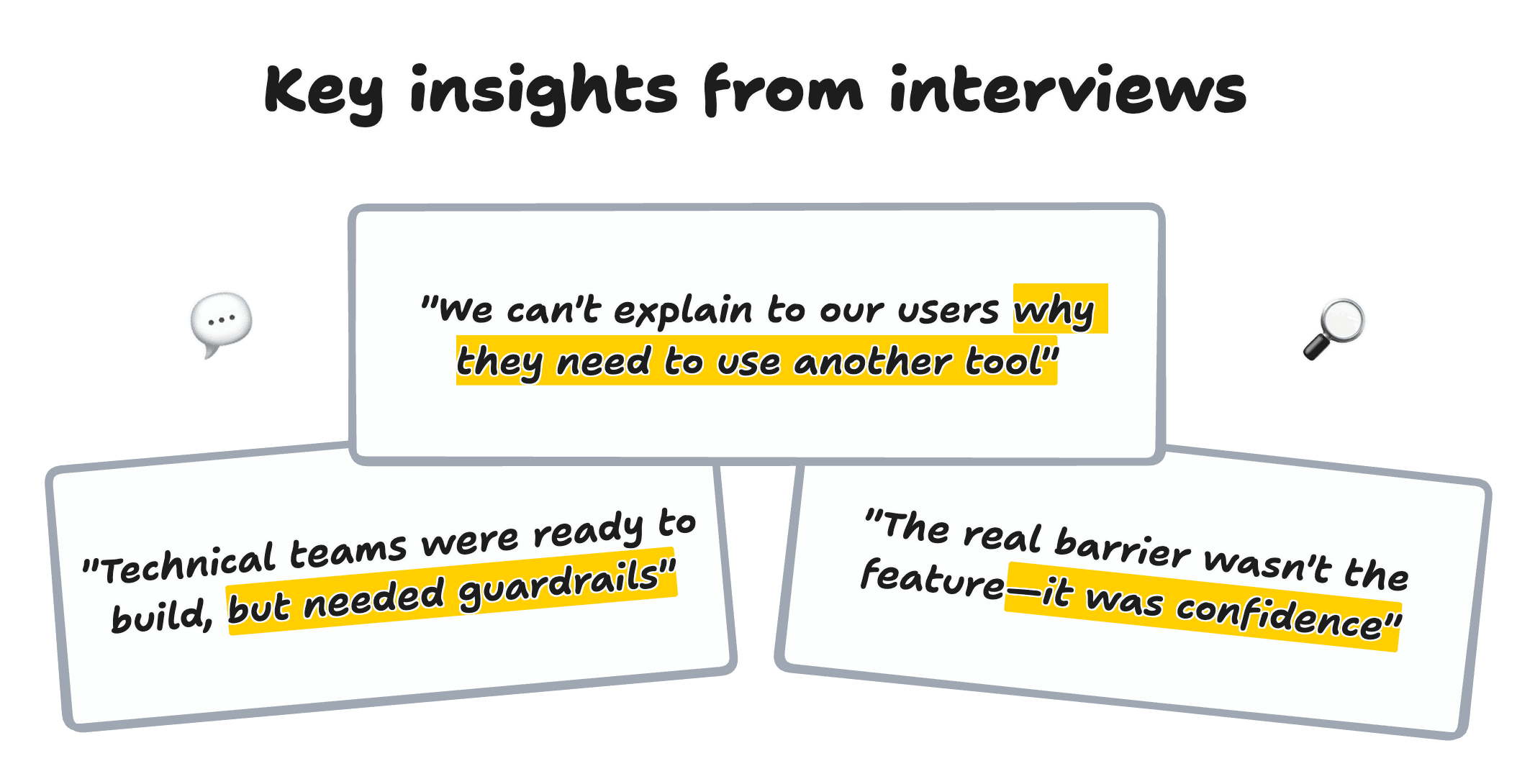 Using these insights, I was able to ask more "why is that?" questions and ultimately arrived at some overarching insights to guide our solution exploration phase: